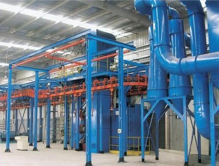 2.拋丸機對于大型工件可采用電動葫蘆輔助升降懸掛工件;