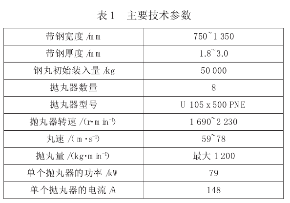 1、 拋丸清理機的主要技術參數(見表 1):